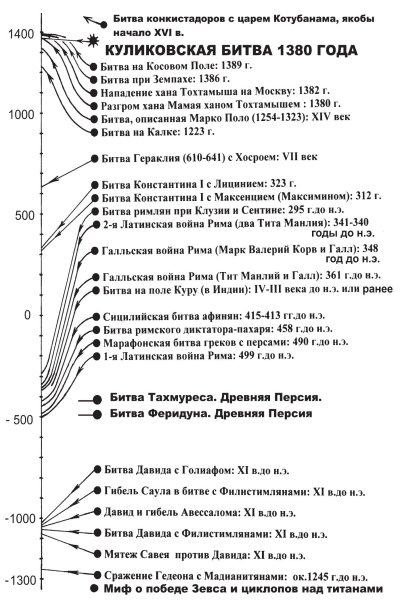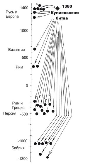 Рис. 44. Скалигеровская история «размножила» Куликовскую битву на множество фантомов [4т1]