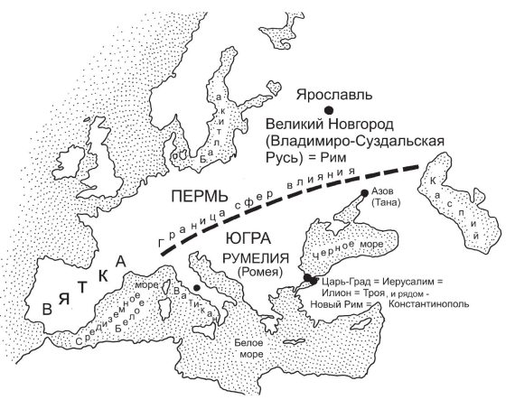 Рис. 46. Зоны влияния двух столиц Великой Империи в XV–XVI веках. То есть – Великого Новгорода и Царь-Града [7т1]