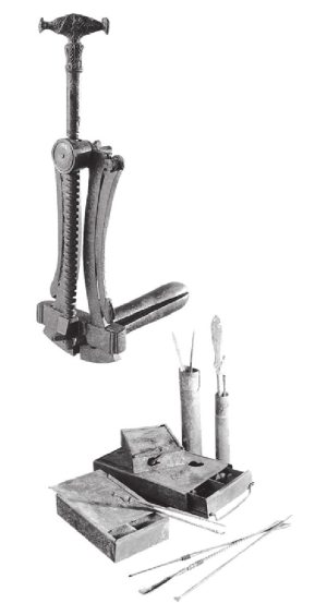 Рис. 49. Великолепные хирургические инструменты якобы I века, обнаруженные в Помпее [674:1], с. 149 [674:1], с. 218