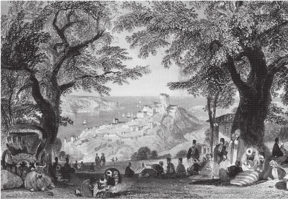 На рис. 4 показана старинная картина, по-видимому, XVIII–XIX веков, изображающая отдых турок на Бейкосе рядом с «могилой святого Иисуса (Юши)». Несомненным центром всей композиции являются живописные развалины мощной старинной крепости. Она стоит на самом берегу Босфора на холме, соседнем с Бейкосом. Впечатляющие развалины старой крепости Ерос сохранились до сего дня [ЗИ], ГЛ. 3.