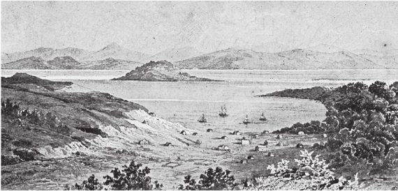 Рис. 57. Гравюра 1848 года, изображающая то пустынное место, где вскоре возникнет Сан-Франциско [336], т. 2, с. 530–531
