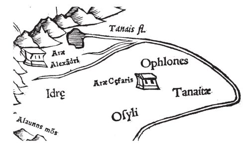 Наряду с «Алтарем Александра», в Руси-Орде, согласно Птолемею, недалеко находился еще один Алтарь – Царский (Алтарь Цезаря), рис. 60. Возможно, тут тоже хранились священные обломки железного метеорита. Как уже говорилось, казацкие армии везли с собой осколки метеорита для ковки Булата. Поэтому «Алтарей» было несколько, они перемещались.