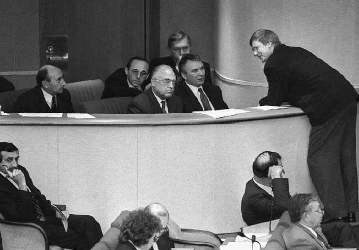 Черномырдин всегда и во всем поддерживал своего преемника Рема Вяхирева (сидит справа) на посту председателя правления «Газпрома». До поры до времени довольно успешно уберегал и от нападок из Кремля и налоговиков.