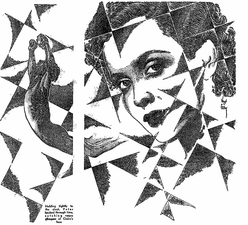 Оуэн задумался на некоторое время. Затем покачал головой, откинув невозможные варианты, и с чувством облегчения посвятил себя прозаической обязанности по установлению правильного времени на голубых эмалевых часах. Галлюцинации были очень реалистичными, но электрические часы оставались неизменными в мире быстро развивающихся событий. В это Оуэн вложил всю свою веру, поворачивая черные стрелки эмалевых часов, пока они не пришли в согласие с электрическими, которые теперь показывали десять сорок пять!