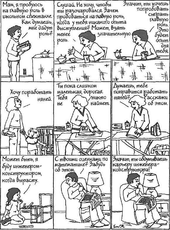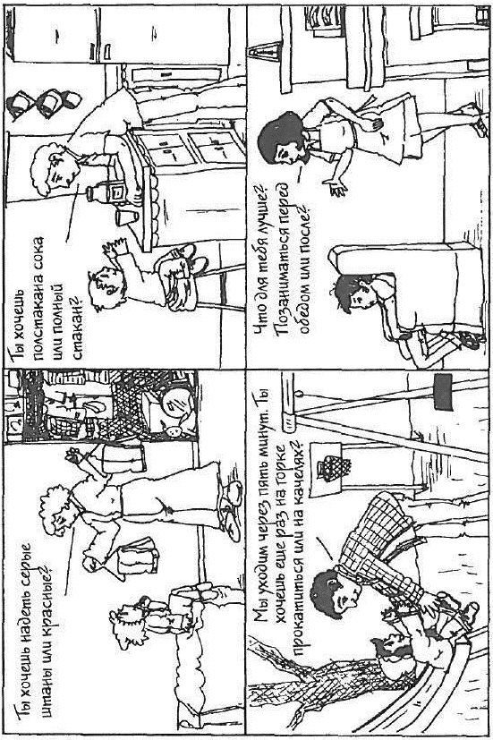 В следующем упражнении вы увидите шесть типич ных высказываний родителей. Пожалуйста, поменяйте каждое высказывание на то, которое поощрит самостоя тельность ребенка.