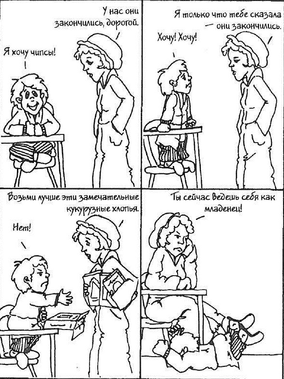 Далее, на рисунках, вы увидите контраст между эти ми приемами и тем, как обычно люди отвечают детям, если у них проблемы.