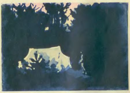 Долго в этот вечер не ложились спать геологи. Все собрались у костра. Чуть белеют среди деревьев палатки, журчит ручей, и каждый думает: где-то сейчас Толя, не случилось ли с ним чего?