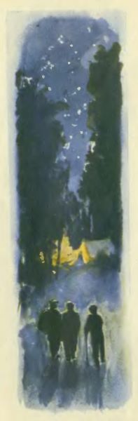 Стало смеркаться. И вот уже зажглись над горами и реками, над обрывами и скалами, над всей огромной тайгой первые вечерние звёзды. Хорошо встречать ночь, когда рядом товарищи, когда ветерок доносит приятный запах костра и впереди белеют палатки лагеря!