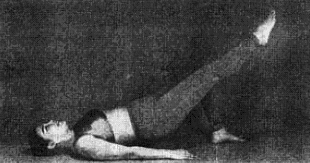 Продолжайте поднимать ногу и опускать ее как можно ниже, не касаясь пола. Сделайте это упражнение по 10 раз для каждой ноги. Сначала, если напряжение мышц спины слишком велико, можно ограничиться меньшим количеством повторений (рис. 22г, д).