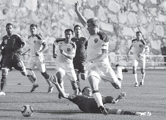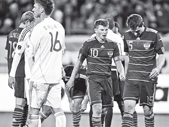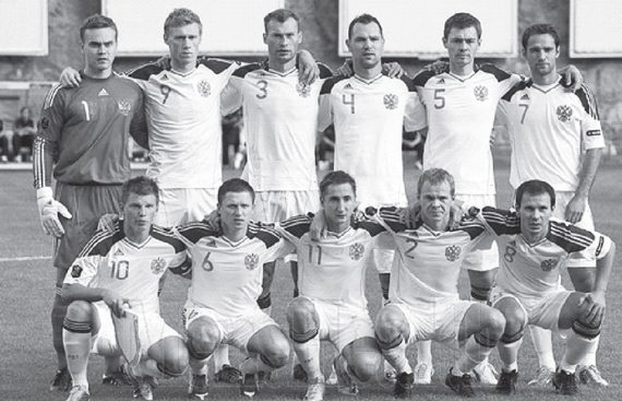 Состав сборной России. В воротах – Игорь Акинфеев. В обороне: слева – Юрий Жирков, справа – Александр Анюков, в центре – Василий Березуцкий и Сергей Игнашевич. В полузащите: на позиции опорного – Роман Широков, слева – Игорь Семшов, справа – Алан Дзагоев, в центре – опытный Константин Зырянов. В линии атаки сразу два форварда – Андрей Аршавин и Павел Погребняк.
