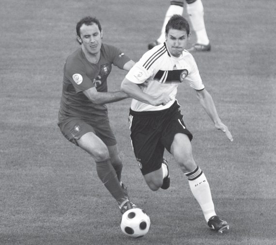Мирослав Клозе (справа) борется с Рикарду Карвалью (матч Германия – Португалия)