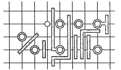 элементов устанавливают большинство малогабаритных диодов и конденсаторов КМ-5 и КМ-6, вплоть до КМ-66 емкостью 2,2 мкФ. «Толстые» детали (более 2,5 мм) следует чередовать с «тонкими». Расстояние между контактными площадками той или иной детали можно увеличить, если это необходимо.В этой работе удобно использовать небольшую пластину-шаблон из стеклотекстолита или другого материала, в которой с шагом 2,5 мм насверлены рядами отверстия диаметром 1–1,1 мм. На ней можно применить возможное расположение элементов относительно друг друга.