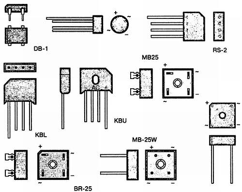 Рис. 13.3. Внешний вид современных зарубежных выпрямительных мостов.