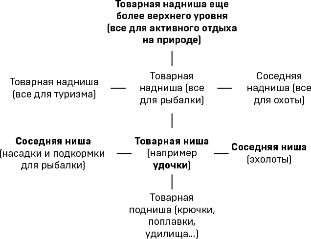 Рассмотрим понятия «надниша» и «подниша». Для примера возьмем абстрактную товарную нишу «удочки». В таком нишевом магазине будут продаваться только удочки.