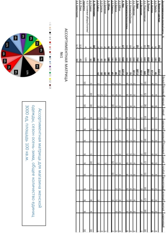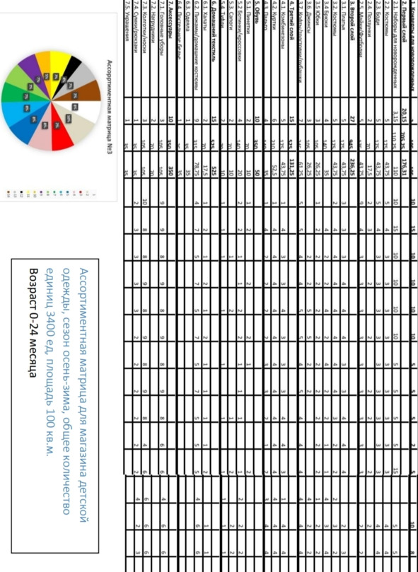 Далее рассмотрим 3 ассортиментные матрицы для женского, детского, мужского магазинов одежды с широким и глубоким ассортиментом (микс).