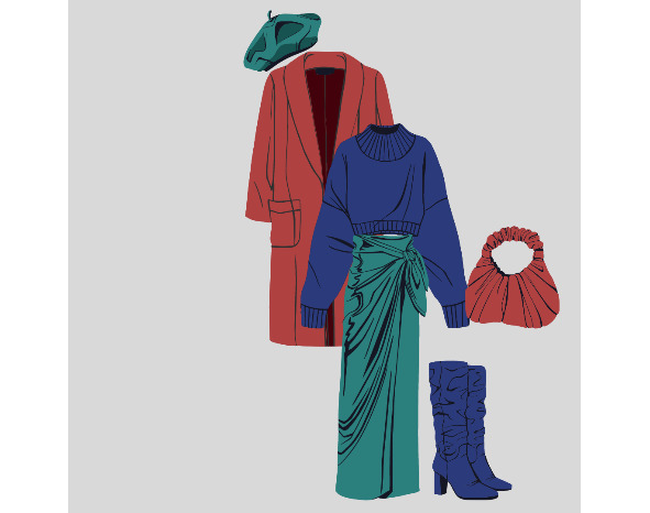 Вы можете комбинировать любые цвета (главное, чтобы они сочетались друг между другом, как и в основных принципах цветового мерчандайзинга) и любые фасоны. Вы можете изменять или подставлять другие элементы, например, платье.