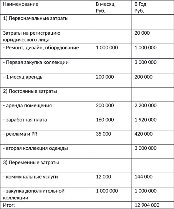 В переменные затраты может входить закупка дополнительной коллекции одежды или ее частей (необходимо