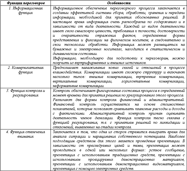 ФУНКЦИИ ПЕРЕГОВОРОВ И ИХ ОСОБЕННОСТИ