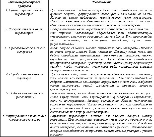 ЭТАПЫ ПЕРЕГОВОРНОГО ПРОЦЕССА И ИХ ОСОБЕННОСТИ