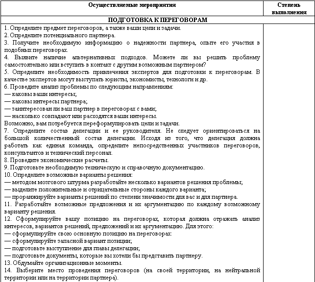 КРАТКОЕ РУКОВОДСТВО ПО ОРГАНИЗАЦИИ И ПРОВЕДЕНИЮ ПЕРЕГОВОРОВ