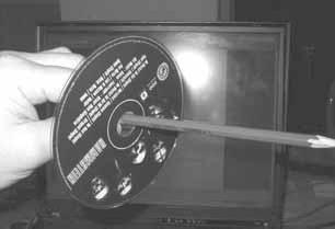 На фото: наденем диск на карандаш, чтобы раскрутить его как колесо Жуковского.