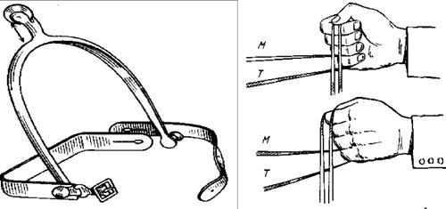 Рис. 20. Разбор мундштучных поводьев для манежной езды