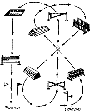 На рисунке 33 показан примерный паркур (маршрут) для соревнований начинающих спортсменов или для классификационных соревнований по нормативам III спортивного разряда.