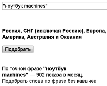 Запрос «ноутбук machines» относится к низкочастотным, о чем и говорит статистика «Яндекса» (рис. 5.14).