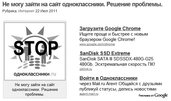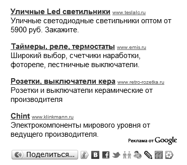 Что же касается блока Ads3, то дополнительно к рекламному коду Adsense мы добавили в него код блока «Поделиться». В результате под нижним рекламным блоком на всех страницах будет отображаться и блок «Поделиться» (рис. 6.11).