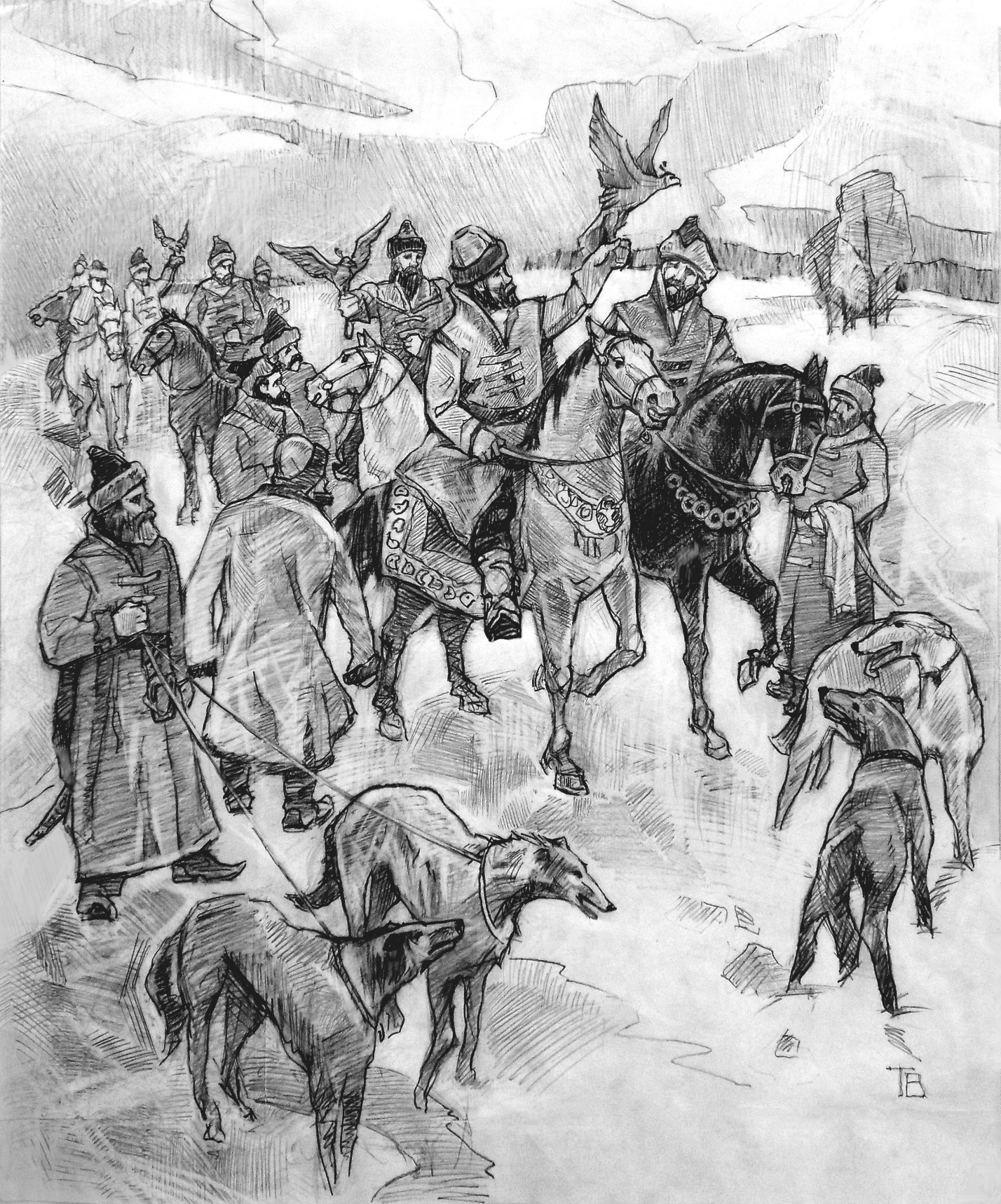 – Возьми! Гой! Гой! – царь поднял руку, напуская сокола на добычу.