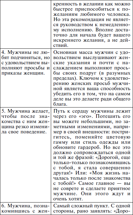 6. Мужчина, познакомившись с женщиной, желает, чтобы она сразу каким-либо образом дала ему гарантию верности.Вывод: Ваша способность совместить несовместимое будет являться залогом успеха любовного знакомства.