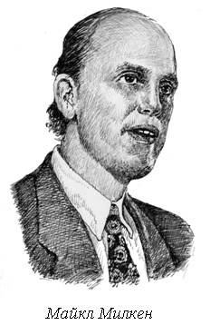 В шестом издании фундаментальной Колумбийской Энциклопедии сказано так: «Майкл Милкен, урожденный Ван Нуис, американский финансист, прозванный «королем мусорных облигаций». Работал в компании Drеxеl Burnham Lambеrt Inc., где ввел в практику корпоративных поглощений и слияний использование долговых обязательств неинвестиционного класса. На пике успеха в 80-х годах о личном состоянии Милкена ходили легенды: по сообщению государственных агентств, Drеxеl заплатил ему 296 миллионов долларов в 1986-м и 550 миллионов – в 1987 годах. В 1989-м федеральный суд обвинил Милкена в нарушении федерального законодательства о ценных бумагах и вымогательстве. В 1990 году Милкен признал себя виновным в махинациях с ценными бумагами в обмен на отказ со стороны государства от более тяжких обвинений в инсайдерстве и вымогательстве. Он был оштрафован и приговорен к 10 годам тюремного заключения.