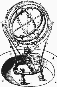 Совсем иное положение с ошибкой ф. Она варьируется от созвездия созвездию. Можно дать вполне естественное объяснение этому обнаруженному нами обстоятельству, если предположить, что координаты звезд измерялись с помощью армиллярной сферы. Это – стандартный средневековый и "античный" инструмент (рис. 2.10). Схематическое изображение на рис. 2.11. При этом угол между плоскостями эклиптики и экватора, включающий ошибку у, фиксируется в инструменте, а угол ф меняется от одной серии измерений к другой (рис. 2.12).