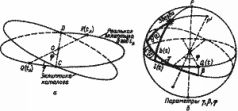 Итак, если предположить, что звездный каталог составлялся в год t и истинные широта и долгота какой-либо звезды были равны b(t) и l(/) соответственно, то в результате ошибки в определении положения эклиптики, парамеризуемой? =7(0 и? =? (t), составитель каталога запишет в каталог координаты b\t) и t(t). С очень большой точностью можно считать, что