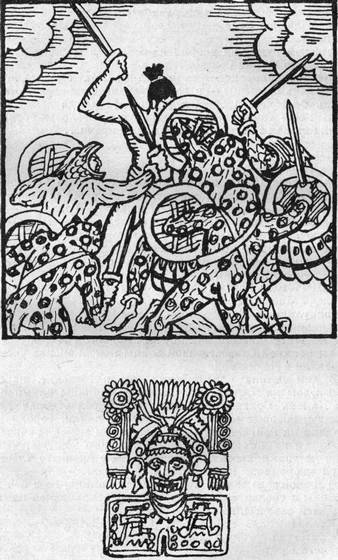 Прошло полмесяца — десять дней. На одиннадцатый день — день обезьяны — в доме Мокель появился Койельшауки. Он молча прошел в дальний угол, где лежал крошечный сын Тамалли, и положил у его изголовья обсидиановый кинжал с застывшими каплями крови...
