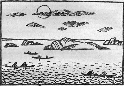 ...Четырнадцать тысяч лет назад на остров, маленькой песчаной каплей расположившийся посередине огромного, как море, Онежского озера, лодки прибывали только в сумерках. Горели яркие факелы. Молчаливые люди племени щуки или окуня медленно выносили на берег колоды, грубо отесанные каменными топорами. В колодах лежали погибшие соплеменники. Далеко, особенно далеко по воде, разносилось заунывное пение — погребальный гимн храбрым воинам, мудрым старцам, покинувшим мир света и переселившимся теперь на Остров Мертвых.