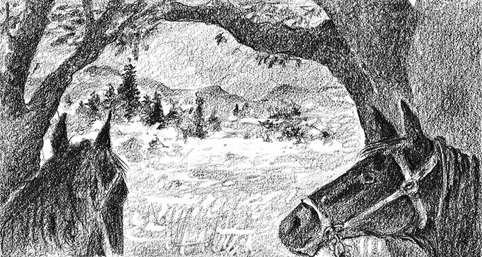 Но уже вскоре Джекоб резко свернул от берега. Лошади стали утопать в зарослях ежевики и папоротника, а листва на деревьях снова пожелтела. Студеный ветер засвистел в ветвях, и, просветами между стволами, уже показалась долина, где пасутся единороги. Правда, в туманной дымке, что стелилась над высокой травой, самих животных почти не было видно. Зато здесь, под деревьями, лежали их умершие сородичи.