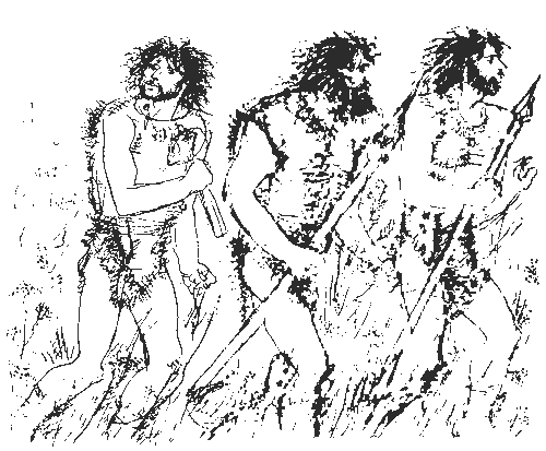 Нерадостно встретила орда коччу наступающий день. Старый Куалл был убит ударом палицы и теперь лежал на песке рядом с мертвым айхом. Коччу похоронили Куалла тут же, под деревьями. Айха они опустили в реку, предварительно крепко скрутив ему ноги и руки ремнями: коччу опасались, как бы на погибшего охотника брата Носача не напал мертвый враг. Экку послал нескольких мужчин на разведку: он хотел разузнать, где сейчас находятся айхи и маумы и куда подевался Носач с двумя братьями. Разведчики вернулись в полдень. Они принесли не очень успокоительные вести. В саванне, неподалеку от леса, орды маумов и айхов разбили стоянки. Судя по столбам дыма, там сейчас пылало много костров. Что касается Носача и его двух братьев, то ни их самих, ни их следов не удалось разыскать… Экку недолго раздумывал, он тут же подал сигнал к выступлению орды. Сборы коччу в дорогу были недолги. Свернуты пушистые шкуры, уложены в них каменные орудия. Дети постарше положили в плетенки из ветвей поджаренную рыбу, и орда тронулась в путь.