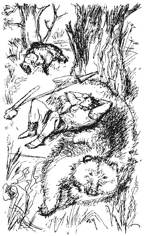 Только принялись за устройство очагов — нужно было перед входами в пещеры вырыть неглубокие ямы и обложить их камнем, — как в лагерь, запыхавшись, вбежала быстроногая Кух. Она сбивчиво рассказала, что у туши мамонта их встретили чужие люди. Носач прислал за подмогой. Мужчины и женщины, могущие сражаться, схватили палицы и копья. Старый вождь повел соплеменников на помощь своим…