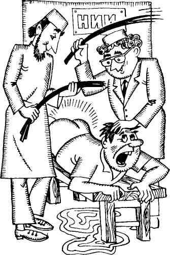Вот недавно захожу в НИИ «Бытздравшаражмонтаж» и замечаю там в одном месте табличку «Процедурная. Экспериментальные порки с 12 до 13 ч». Возле дверей сидит вахтер и никого не пускает.