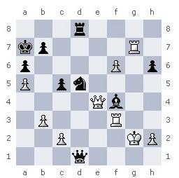 играл черными. Его ход. Последовало: 1. ... Кe3+ 2. Крh3 Лd5 3. Л:f4 Лh5+ 4. Крg3(если 4. Лh4, то 4. ... Фf1+ 5. Крg3 Кf5+) 4. ... Фe1+ 5. Крf3(или 5. Лf2 Кf5+) 5. ... Лh3+ 6. Лg3 Л:h2! 7. Ф:e3 Фh1+ 8. Крg4 Лh4+ 9. Крf5 Фd5+ 10. Крg6 Фg8+ 11. Крf5 Лh5+ 12. Крe4 Фd5X.Лишь с восьми лет, когда Хосе-Рауль окончил подготовительную школу и поступил в реальное училище в Гаване, ему было разрешено по воскресеньям посещать шахматный клуб, и уже вскоре один из сильнейших и старейших шахматистов Кубы — Гольмайо, встречавшийся за доской со Стейницем и Чигориным, не мог давать ребенку ладью вперед.