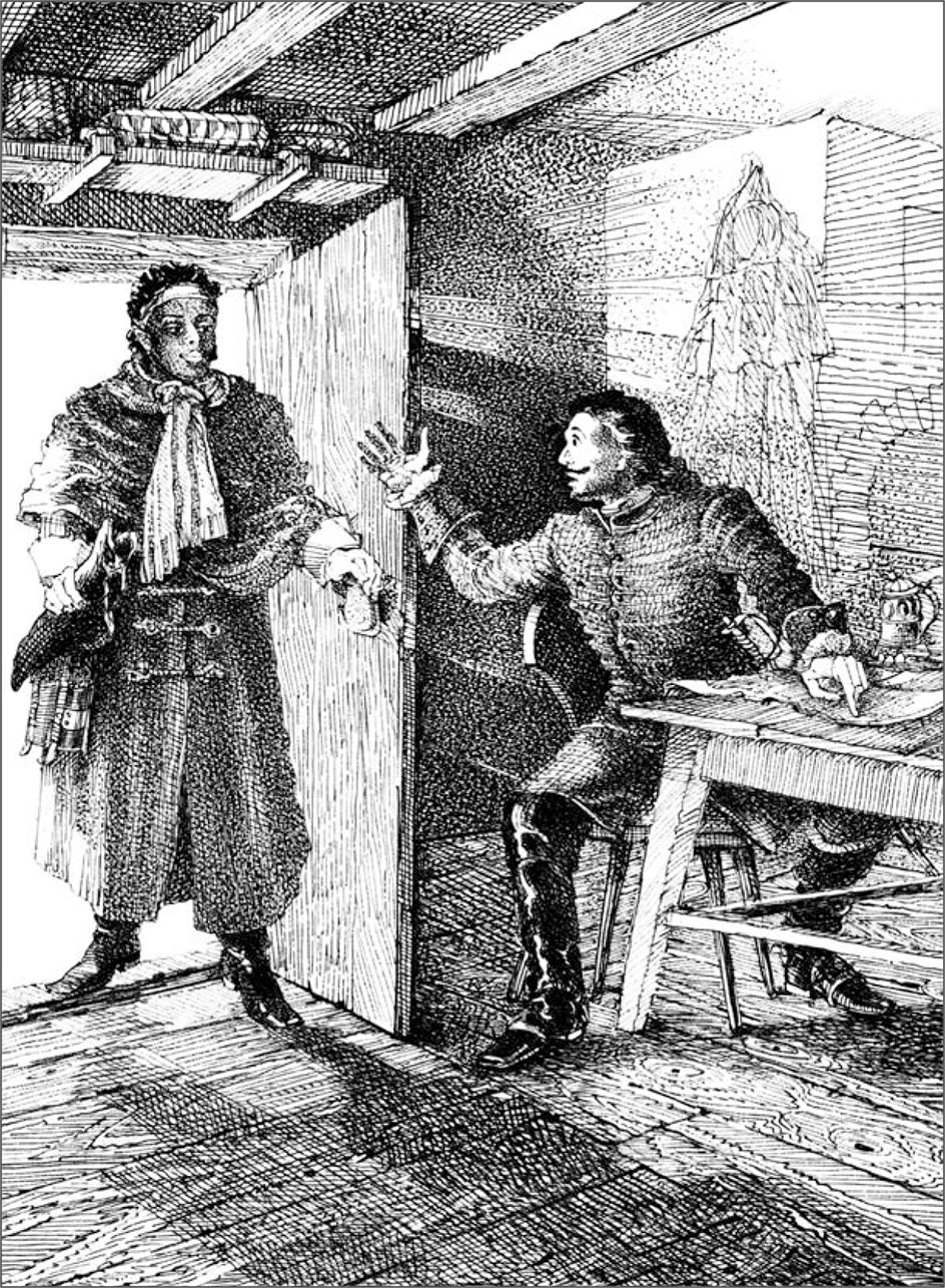 «Ба! Ибрагим? – закричал он, вставая с лавки. – Здорово, крестник!» Ибрагим, узнав Петра, в радости к нему бросился, но почтительно остановился. Государь приближился, обнял его и поцеловал в голову. «Я был предуведомлен о твоем приезде, – сказал Петр, – и поехал тебе навстречу. Жду тебя здесь со вчерашнего дня».