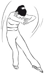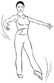 спина изогнута, живот подобран. В данном движении грудь вперед, поясница прямая, живот подобран. Эти два движения позволяют добиться плоского живота.Колени согнуты, наклон корпуса к ноге, руки прямые.
