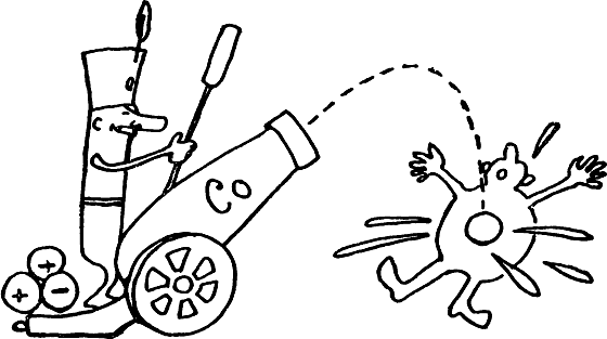 Живая клетка находится под обстрелом кобальтовой «пушки». Град картечи сыплется на нее. Осколки попадают во все закоулки клетки. В ядро, митохондрии, микросомы и другие органелы. Вот снаряд попал в молекулу белка, «отколупнул» от нее кусочек, допустим, атом водорода. Равновесие нарушено. Измененная молекула (она называется свободным радикалом) стремится его восстановить. Свободные радикалы имеют огромную химическую реактивность. Они тут же стараются прореагировать со своими соседями. Жадно соединяются с молекулами воды, кислорода. Образуются новые соединения — гидроперекиси, перекиси, хиноны. Они тоже довольно активны. И тоже стремятся вступить в реакции. Прямое попадание атомного «снаряда» вызывает в клетке «взрыв» реакций. Новые вещества, новые необычные реакции, возникшие в ней, втягиваются в нормальный обмен веществ.