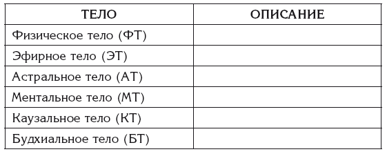 все полученные результаты (стабилизация). После выполнения такой подготовительной работы – разбор этой конструкции идет очень быстро (через чистку астрала и разбор жесткой ментальной конструкции), поскольку закреп этой истории делается эгрегорами на слово, то есть на ментальном теле. Что сильно упрощает нам задачу по снятию подобных блоков. Заполним таблицу исследования.В графе «ОПИСАНИЕ» – максимально подробно описывай все, что будет регистрироваться по телам.