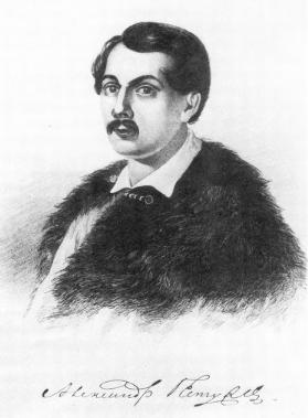Всадники, которые доселе разговаривали с знакомыми, ступив на землю, или нестройно разъезжали в поле, вскочили на коней и понеслись навстречу поезда, спускающегося с горы: то был Аммалат-бек, племянник тарковского шамхала [4] , со своею свитою. Он был одет в черную персидскую чуху * , обложенную галунами; висячие рукава закидывались за плеча. Турецкая шаль обвивала под исподом надетый архалук из букетовой терма-ламы * . Красные шальвары скрывались в верховые желтые сапоги с высокими каблуками. Ружье, кинжал и пистолет его блистали серебром и золотою насечкою. Ручка сабли осыпана была дорогими каменьями. Сей владетель Тарков был высокий, статный юноша, открытого лица; черные зильфляры (кудри) вились за ухом из-под шапки… легкие усы оттеняли верхнюю губу… очи сверкали гордою приветливостию. Он сидел на червонном коне, и тот крутился под ним как вихорь. Против обыкновения, не было на коне персидского круглого, расшитого шелками чепрака * , но легкое черкесское седло с серебром под чернетью, с расписанными потебнями * и со стременами черного хорасанского булата под золотою насечкою * . Двадцать нукеров [5] на лихих скакунах, в чухах, блестящих галунами, сдвинув шапки набекрень, скакали, избочась, сзади. Народ почтительно вставал перед своим беком и склонялся, прижимая правую руку к правому колену. Ропот и шепот одобрения разливался вслед ему между женщин.
