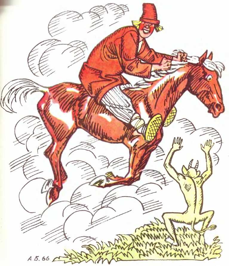 Балда на кобилу сів,Проскакав верству, аж куряву збив.
