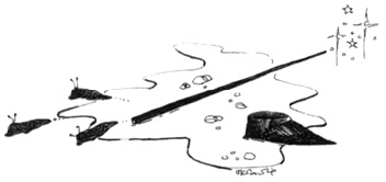 — Яка гидота! — вигукнув молодий чаклун і спробував той казанчик спершу «щезнути», потім відчистити чарами і, врешті-решт, вигнати з хати. Однак жодне закляття не подіяло, і він не зумів перешкодити казанкові пострибати за ним з кухні аж до самого ліжка, голосно брязкаючи й гупаючи на кожній дерев'яній сходинці.