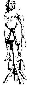 Вернее было бы назвать это сажанием не на кол (как при казни), а на специальное приспособление — деревянную или железную пирамиду. Обвиняемого раздевали и располагали как показано на рисунке. Палач при помощи веревки мог регулировать силу давления острия, мог опускать жертву медленно или рывком. Совсем отпустив веревку жертва всем своим весом насаживалась на острие.