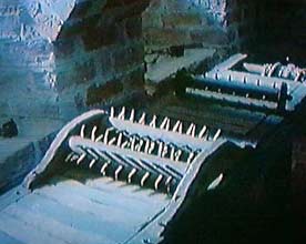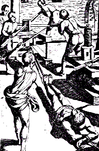 Иногда дыба снабжалась специальными валиками утыканными шипами, при протягивании по которым жертва раздиралась на кусочки.